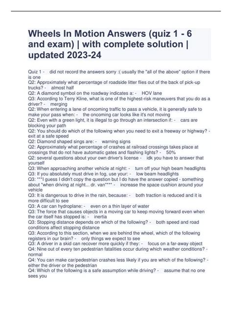 Download Wheels In Motion Quiz 3 Answers pdf Reader